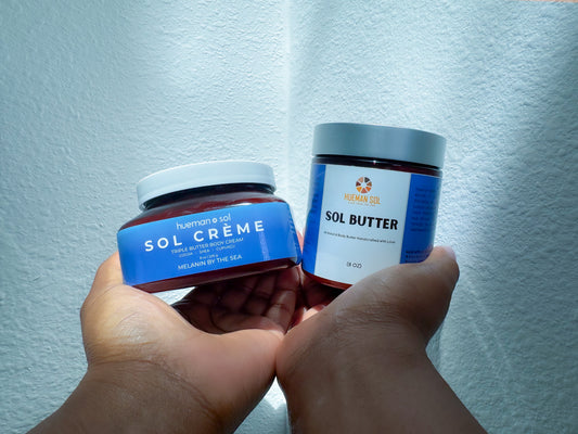 One 8oz Sol Butter and one 8oz Sol Crème, delivered together every cycle. Choose the same scent for both or mix and match — your mood, your call. Your first box arrives with a mini scent sample tucked inside so you can discover your next favorite before you even run out.