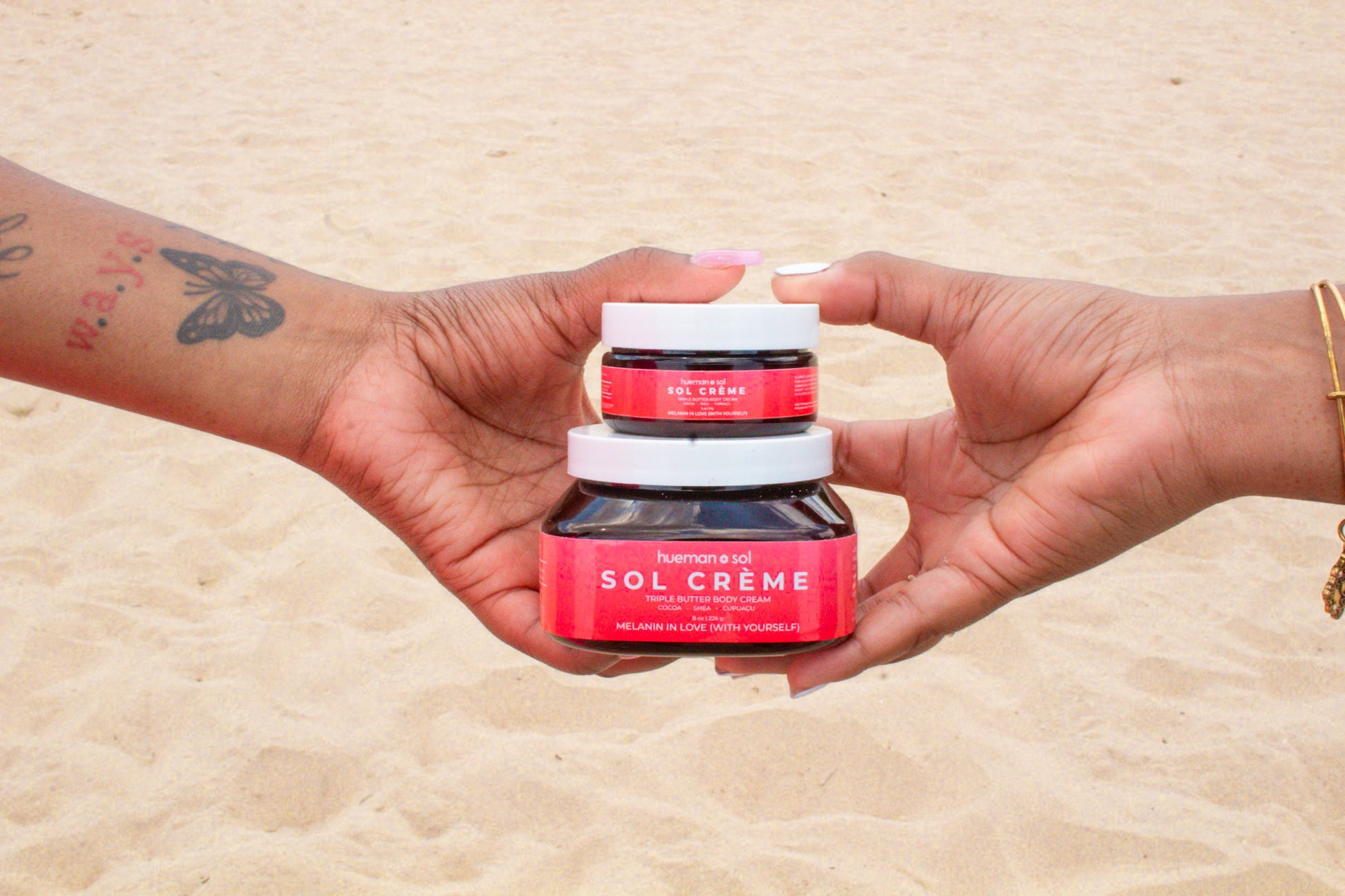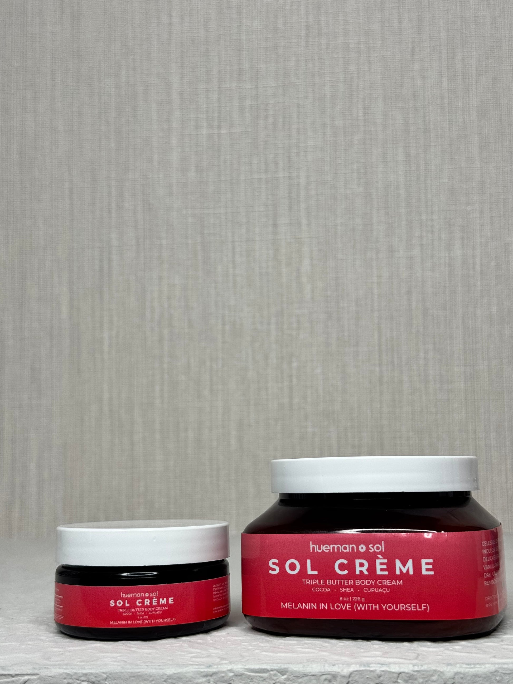 Meet the Sol Crème Duo—our triple-butter body cream made to melt right into your melanin. Crafted with cocoa butter, shea butter, and cupuaçu butter, this luxuriously soft formula delivers deep moisture with a lighter feel—perfect for everyday radiance, especially in warmer months.