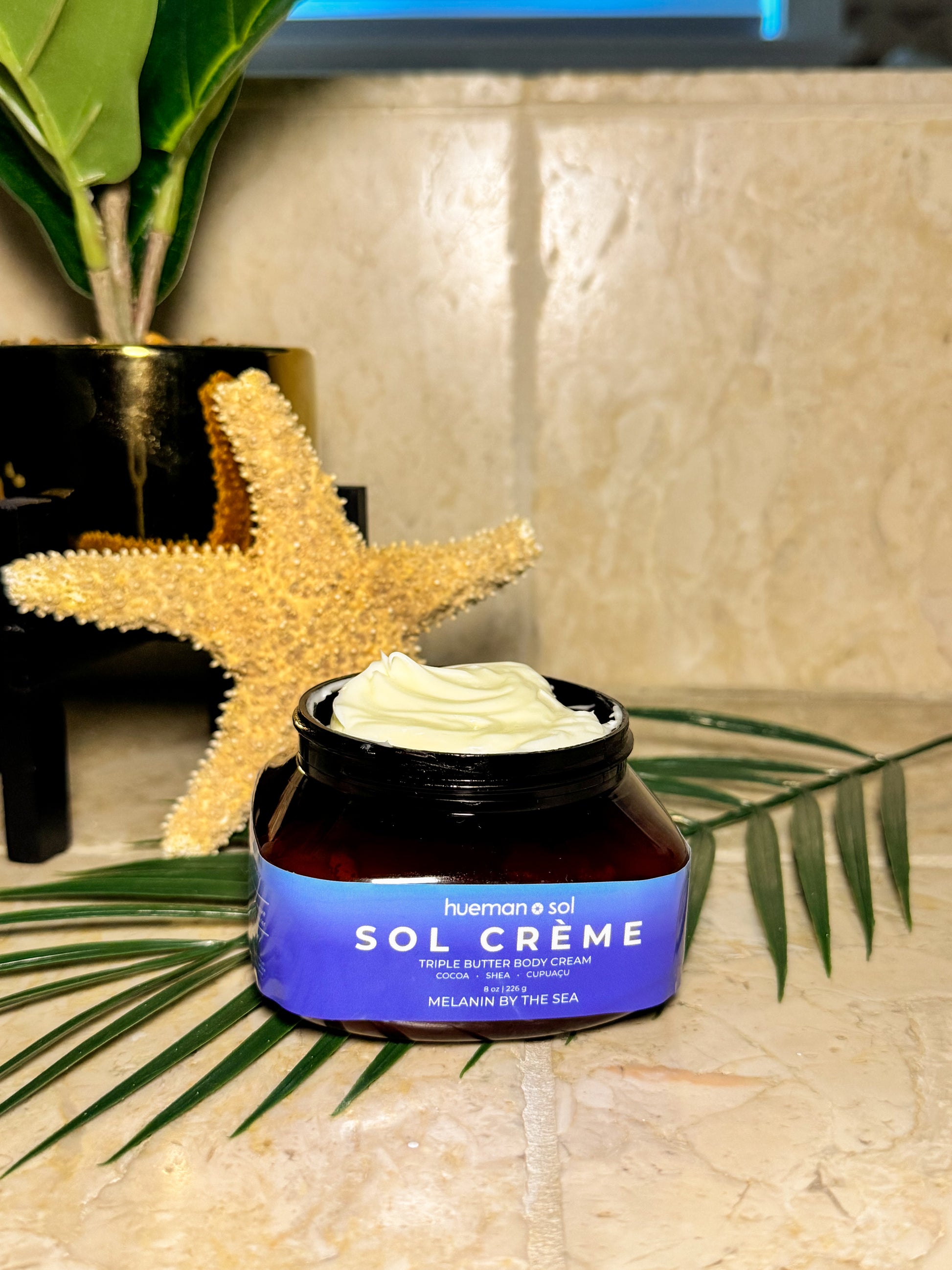 Meet Sol Crème—our triple-butter body cream made to melt right into your melanin. Crafted with cocoa butter, shea butter, and cupuaçu butter, this luxuriously soft formula delivers deep moisture with a lighter feel—perfect for everyday radiance, especially in warmer months.