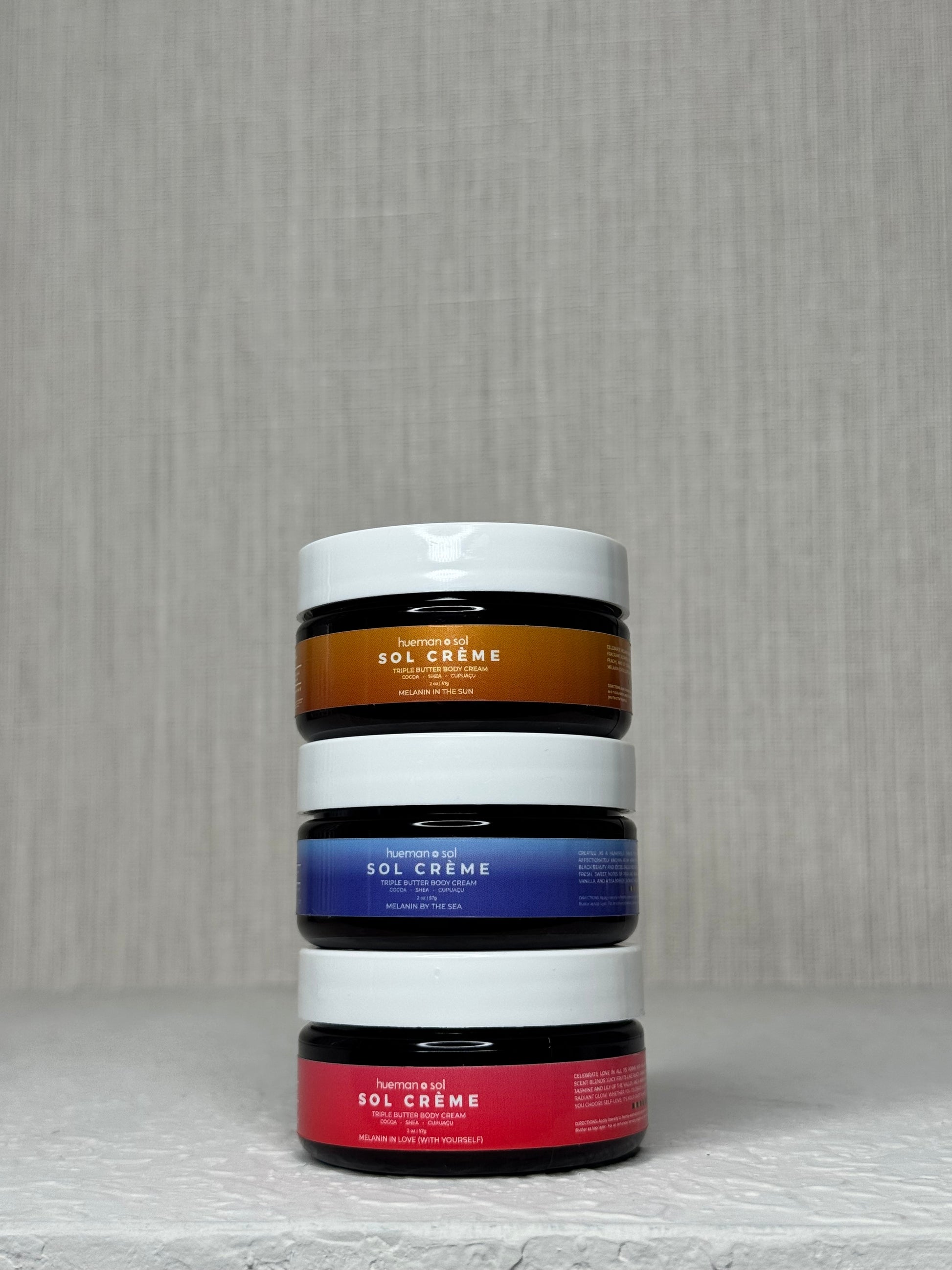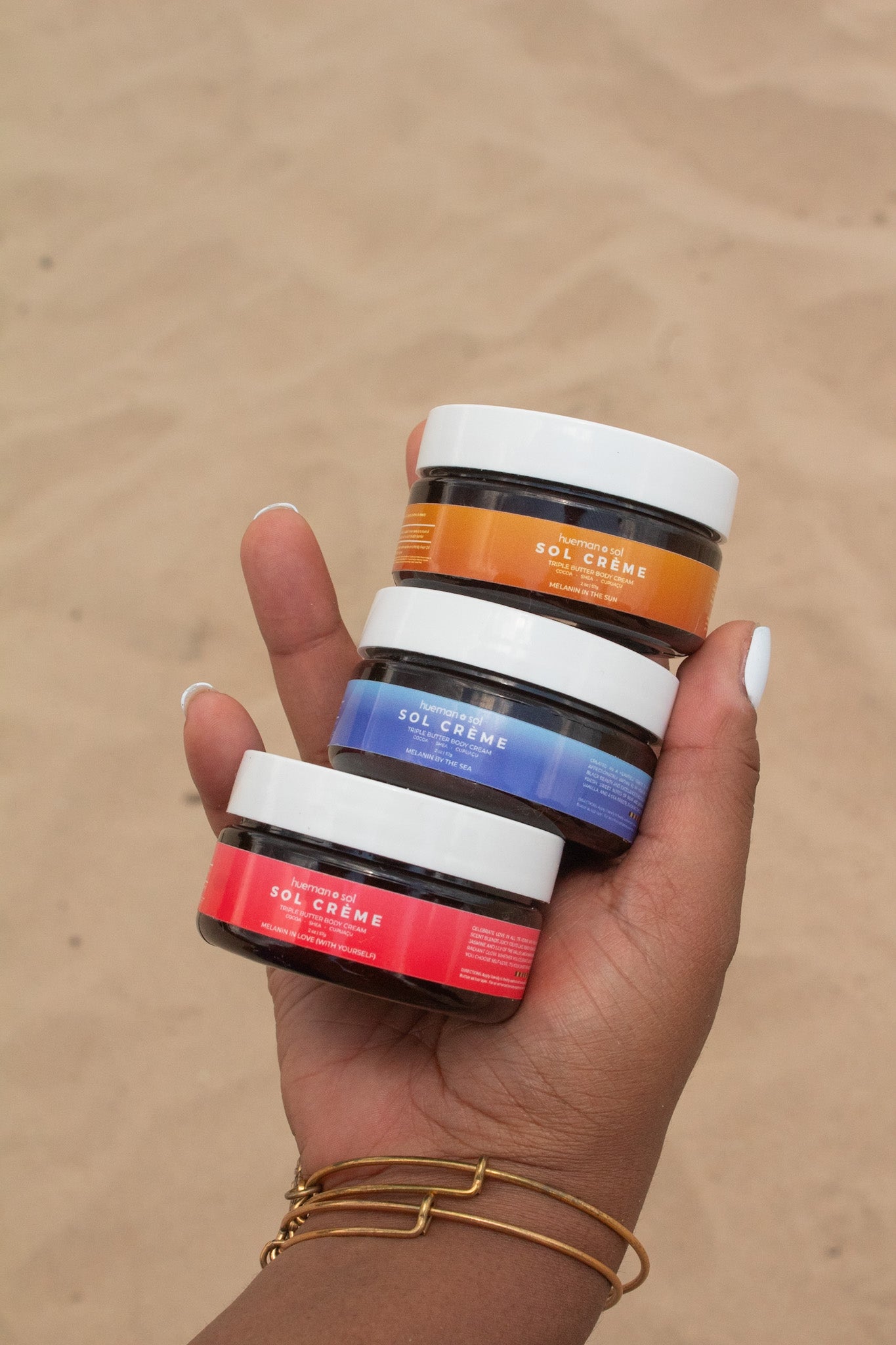 Meet the Sol Crème Mini Trío—our triple-butter body cream made to melt right into your melanin. Crafted with cocoa butter, shea butter, and cupuaçu butter, this luxuriously soft formula delivers deep moisture with a lighter feel—perfect for everyday radiance, especially in warmer months.